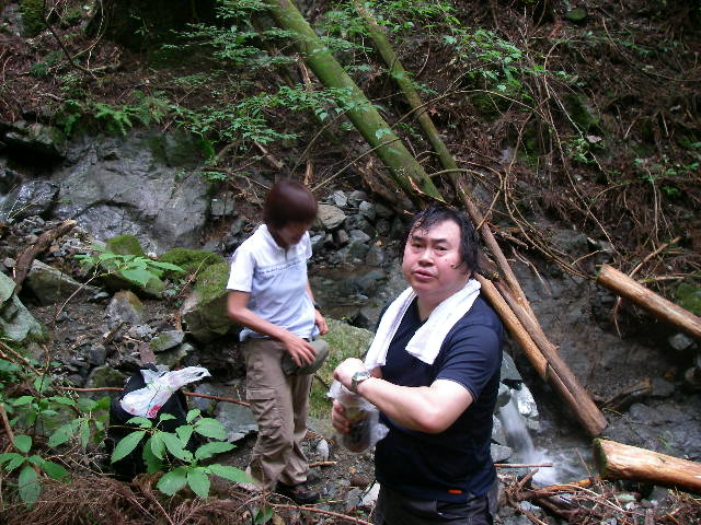 今回は、約1ヶ月ぶりのこともあり、簡単な山へ行ってきました。場所は約4年振りの倉岳山。2003年10月4日に第11回登山として行っております。http://www.nurs.or.jp/~yide/031004J/2003.10.04J.html この山はJR「梁川又は鳥沢」駅からバスを使わずアプローチでき、かつ比較的近いことから、ハイキングコースとしては極めて有名ですから、行かれた皆さんも多いかも知れません。 蒸し暑いながらも、台風と雨で増水した沢沿いの道は豊富な水量で心地よい冷えた風を提供してくれます。普段はこんな水量もないでしょうが、今日ぐらいであれば、夏場の水遊びとしても絶好でした。残念!皆さん久しぶりなのでたっぷり汗をかきました。頂上でカップラーメンをすすり、まるで遠足のような会話をひとしきりしたあと、穴路峠から直接「鳥沢」に下る道は未踏であったため高畑山には寄らず下山致しました。 お風呂は藤野から送迎バスの五感の里。体脂肪が減ったと喜んでおられる女史もいましたが、その後の焼肉とビールで果たして結果はどうだか・・・。仕上げは7月に「焼肉一番」として新装開店した昔の「藤野十番」へお邪魔してきました。奥さんとマスターに、飲み屋から焼肉屋になった経緯をお聞きしてきた次第であります。なるほどナルホド・・・。 |