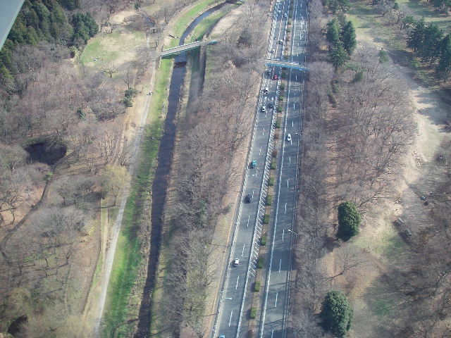 真ん中がJR中央線。右上の緑地が井の頭公園 |