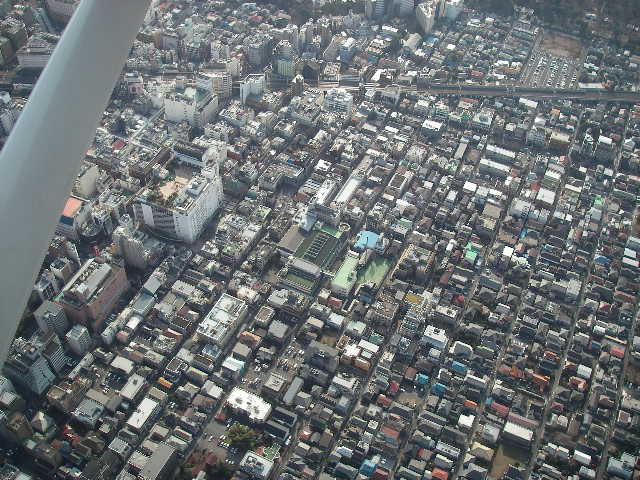 工事中の東京スカイツリー。離陸してここまで8分 |