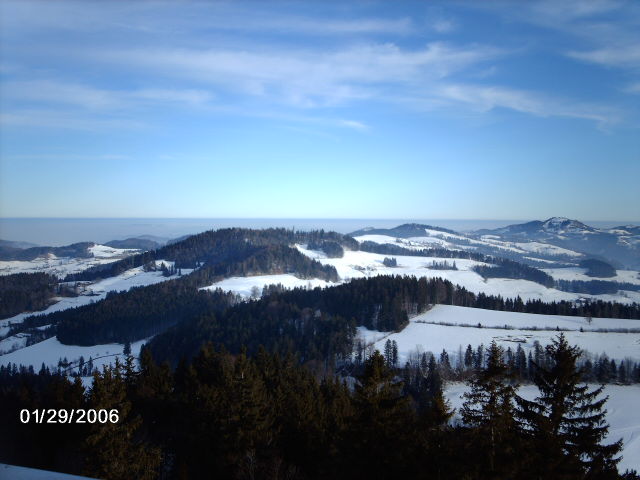 スイス駐在員事務所だより 〜その8 久々のスイス駐在員事務所だよりです。香港、台北、ジャカルタ、シンガポール、東京の各地を回った2週間強の大遠征から先週の初めにチューリッヒに戻りました。香港では井手夫妻とジャズを楽しみ、日本では山の仲間と一献かたむけました。ご参加頂きました方、お忙しいなか大変ありがとうございました。(田沼はようやくインドから脱出したころか・・・・)。ご参加いただけなかった方残念でした。次回は是非是非お願いします。久しぶりにチューリッヒで過ごす週末、お天気に恵まれたため、土曜日は買い物とおのぼりさんの気分で街を再度散策しました。日曜日は前回ギックリ腰で断念した郊外の高原Bachtelのうえまで登頂してまいりました。今回は地元チューリッヒをお送りします。山の写真はすべてBachtelの頂上にて撮影したものです。次回以降またシリーズものが復活できるかも知れません。尚、このお便りは、間違いなく全員に配信していますので、それでも受け取っていない方は早急にご自分のコンピュータまたはセキュリティの強度をチェックしてみて下さい。田幡さん! (発信日 2006年1月29日) |